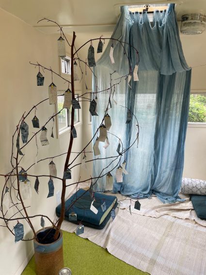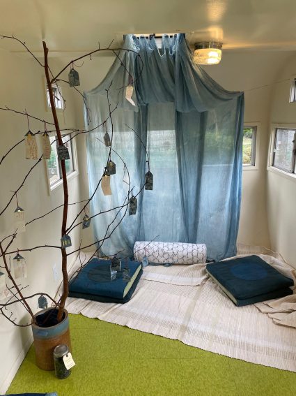 This installation is in part an offering in conjunction with Indigofest, which is a week long retreat celebrating indigo from seed to cloth which happens every August at the Sou’wester.