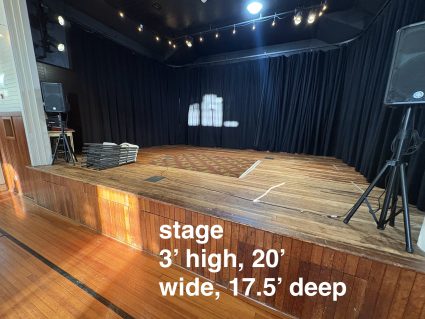 Use the area at or around the Sou’wester Outdoor Kitchen, across from the Sauna and Tea Trailer. Access to power, lights and water. (In the past it has been used as a puppet stage!)