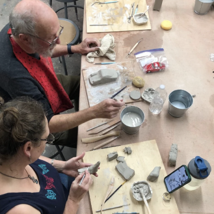 Personalize a hand-thrown mug with stamps, underglaze and carving, or freestyle handbuild your own creation with 2 lbs of clay.