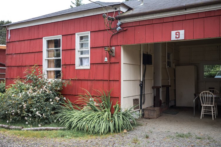 The Beach Cabin accommodates 2 adults and 1 youth. This bright, stand-alone cabin offers views of the coastal forest and is the only one featuring a charming claw-foot tub. Inside, you’ll find a record player, a cozy reading corner, and nautical decor, including whale bones. Additionally, it has an attached covered carport with seating and a table.