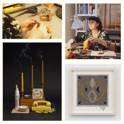 In her latest body of work, Carolyn Hazel Drake continues to explore the resonant symbolism in domestic objects. She presents tenderly crafted ceramics and textiles placed alongside familiar tokens of domesticity, such as clocks, mirrors, and telephones. An installation of these objects will animate the Bridal Suite for the studio tour.