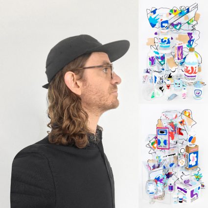 Shiny Desirable Objects is a series where I alter and paint the packaging of goods that I have consumed — rebranding them — and then integrate the packaging into two dimensional acrylic paintings. The rebranded goods and paintings are staged in the style of product advertising and then photographed.