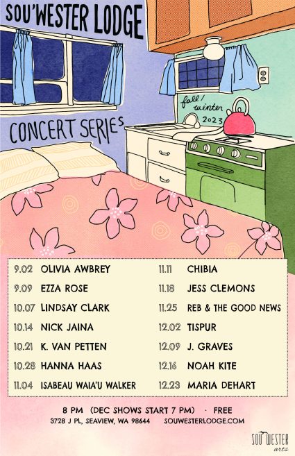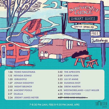 Beyond our concert series, The Sou’wester Artist Residency Program hosts musical talents from near and far, year-round to retreat, write, and record. Please contact souwesterlodgemusic@gmail.com for booking inquiries