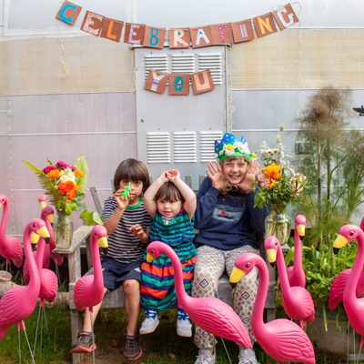 Enjoy a colorful bouquet of flowers, a delicious chocolate bar, and a playful flock of pink flamingos surrounding your accommodation to brighten your birthday.