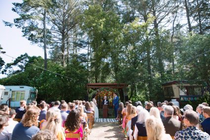 The Sou’wester Historic Lodge and Vintage Travel Trailer Resort have an eclectic mix of accommodations including suites in the lodge, cabins, trailers, RV spaces, and campsites.  Onsite Accommodations: 70-120 guests (full-service beds plus additional camping & RV spaces) Event Capacity: 150 guests. There are additional (and more traditional) options for lodging in the surrounding area to accommodate more guests.